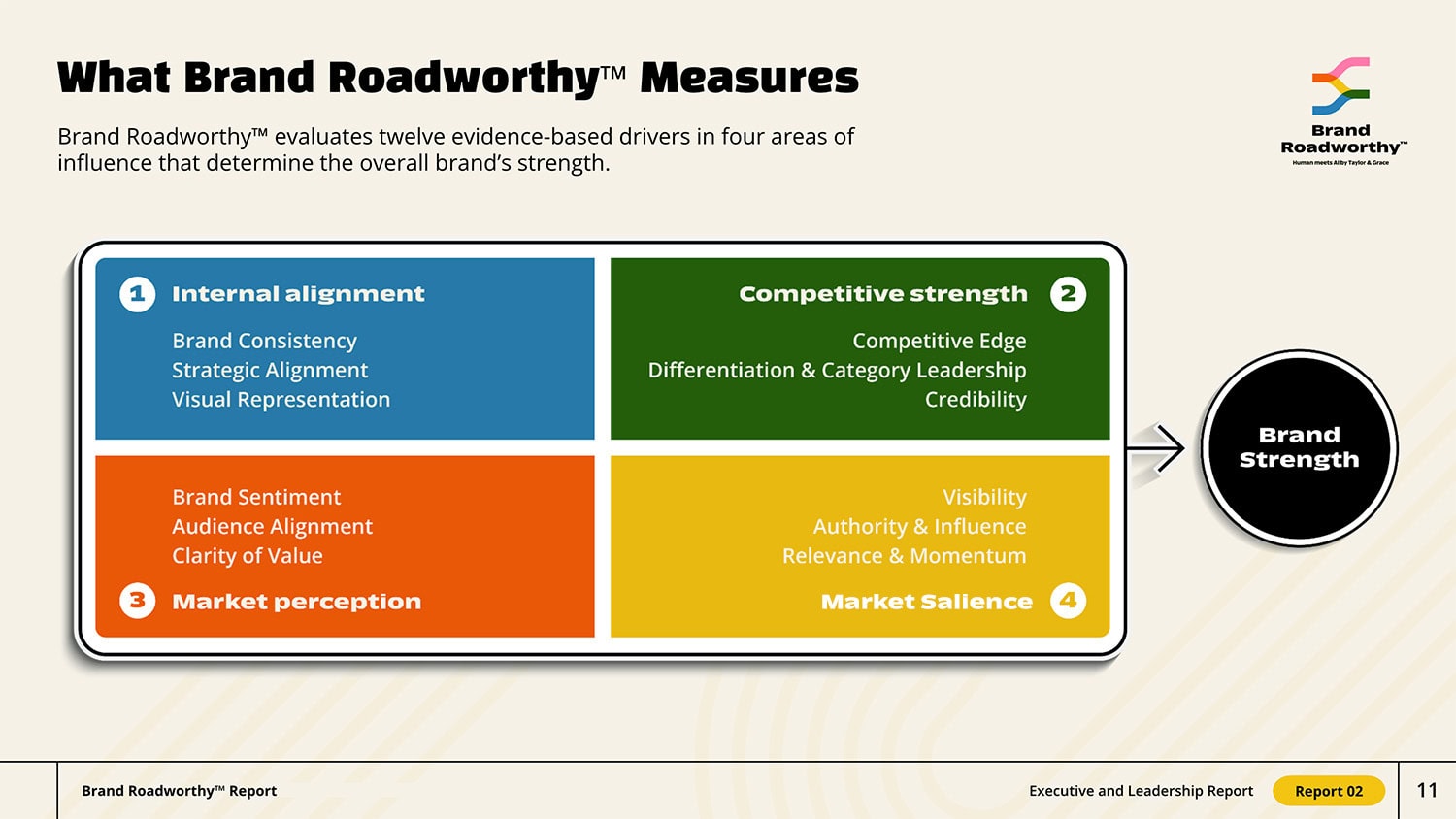 Download our sample Brand Roadworthy™ Report to preview the clarity and depth of our analysis.